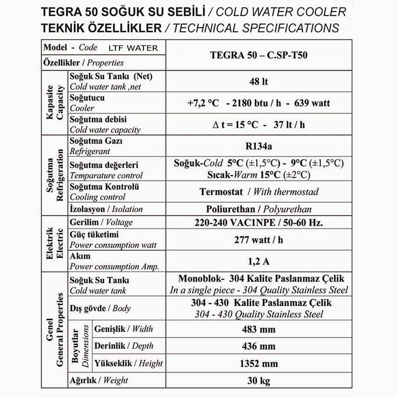 TEGRA 50 – Soğuk Su Sebili Teknik Bilgileri